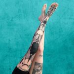 This playful and energetic look uses green, lime, and black swirl art over a nude base. The combination of bright tones and negative space creates a bold and graphic contrast that’s both modern and vibrant.