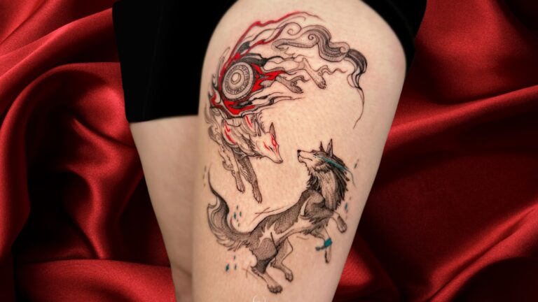 If you love video games, here’s a tattoo idea for you! The fierce and unforgettable Malenia, Blade of Miquella, the character from Elden Ring. This ink perfectly captures her grace and power and is a stunning piece for fans of epic tales and warriors.