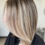 Cool ash blonde waves are effortlessly styled into a minimal half-up twist for a laid-back yet polished vibe. The soft movement and seamless balayage make it ideal for a relaxed birthday celebration.