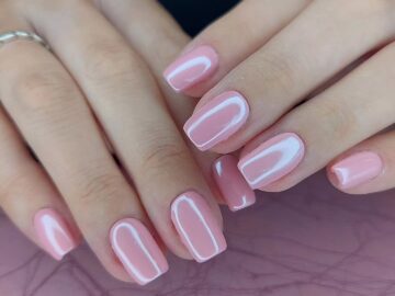 A blend of soft milky pink and white fades seamlessly into square tips. This minimalist design offers a chic, clean aesthetic that pairs beautifully with silver or gold jewelry.