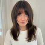 11. Layered Blowout with Curtain Fringe in Mocha Brown (Short Layered Haircuts)Credit