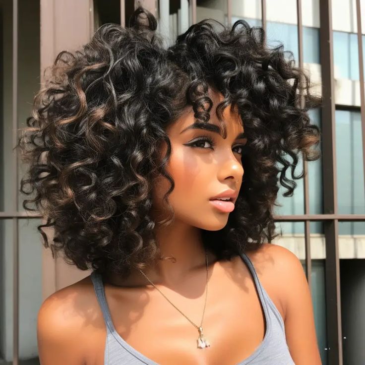 4. Playful Curly Layers with Bangs