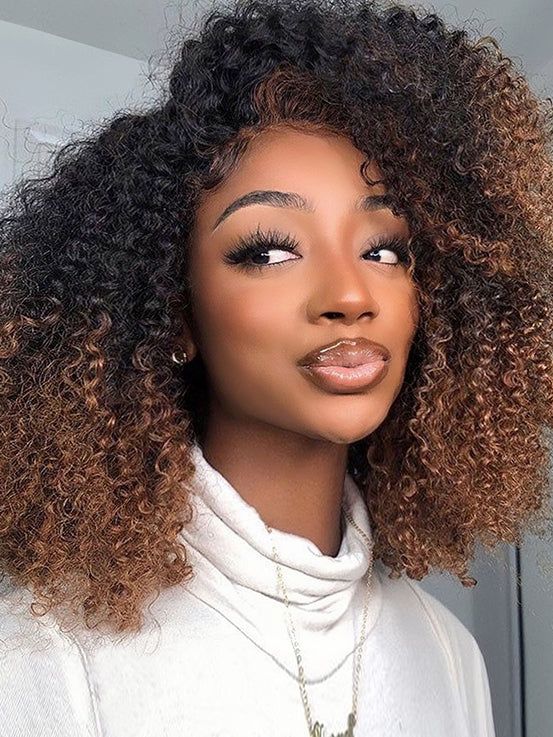 These ombré curly layers with warm caramel highlights are adding sun-kissed effect to the hair. The energizing medium-length curls turn this into a beautiful option for not only casual outings but also school braids styles. The different shades of the color gradient are in a soft transition, resulting in a fuller and more dimensional look.