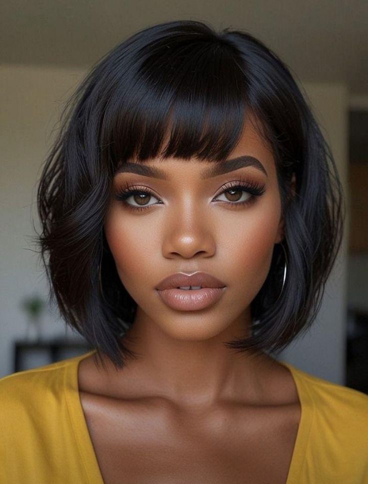 16. Sleek Bob with Full Bangs