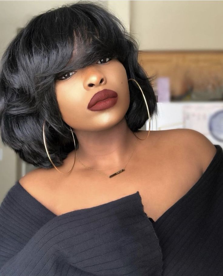 The Bob haircut made of bold and layered trees combines very fluffy sides with volumetric strands which are the “baddie’s” aproved aesthetics. The layers contribute to the shape and the movement. Your hair will look amazing and the bangs will highlight your face—this styling is perfect for the school short hairstyles or any casual outfit.