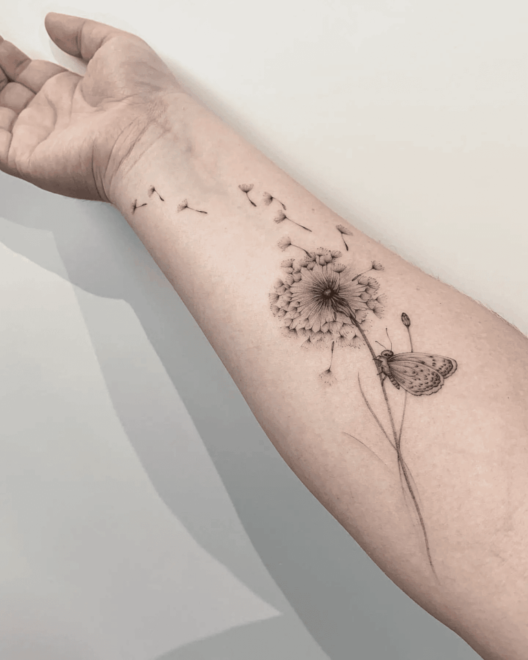 Go for a super realistic dandelion on your bicep with detailed shading. It’ll look so real, people might try to blow it!