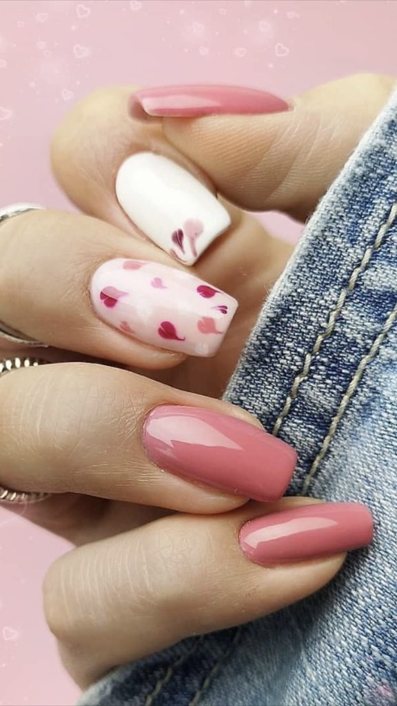 Put on your Valentine’s Day romantic mood with nails that are designed with a beautiful pink gradient together with cute hearts on a white base. The design is a combination of charming simplicity and feminine art.