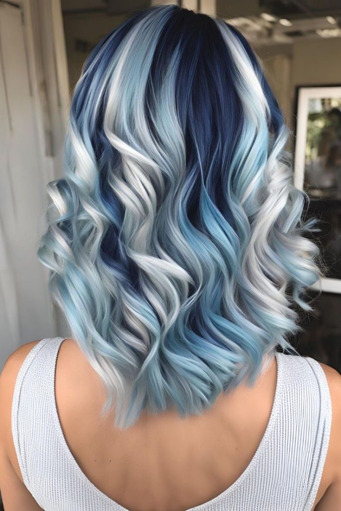 Frosted blue waves offer a dreamy and ethereal look that is sure to turn heads. This dyed hair style features a seamless gradient of icy blues and silvery whites, perfect for those with light skin who want to experiment with cool-toned shades. The voluminous curls add texture and movement, enhancing the magical effect of the color palette. Ideal for special occasions, this look is a statement-maker for women embracing bold creativity. Style tip: Pair it with soft makeup in neutral tones and delicate jewelry to keep the focus on your hair.