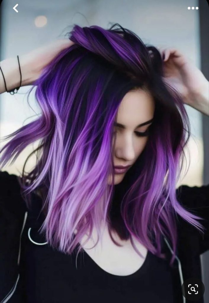The combination of purple and lilac colors creates a very attractive ombre hairstyle. The gradient flows from dark to light lavender at the ends, making it a great look for people who are not afraid of color. This spiral hair look is suitable for all the occasions such as parties or for someone working in creative industries and can be worn by light skin and brown skin alike. To style it, one can use soft curls for the full effect of the color and regular deep conditioning that would keep the hair hydrated and smooth all day long.