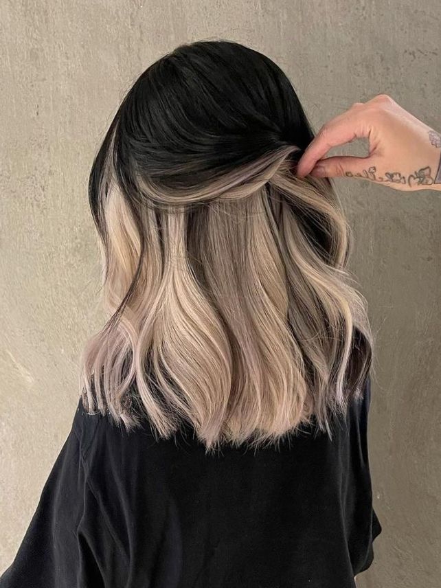 Anyone wanting a tricky but chic contrasting effect can go for this distinguished ash brown and platinum bob with half-up. The muted platinum underneath forms a soft peekaboo effect while it also deepens the rich brown on top. This look, which works well in both professional and casual settings, is especially nice for those with light skin and brunettes. It looks good with delicate jewelry which adds to the overall elegance. To maintain the hairstyle, you can use purple shampoo to make sure the platinum tones are kept always vibrant.