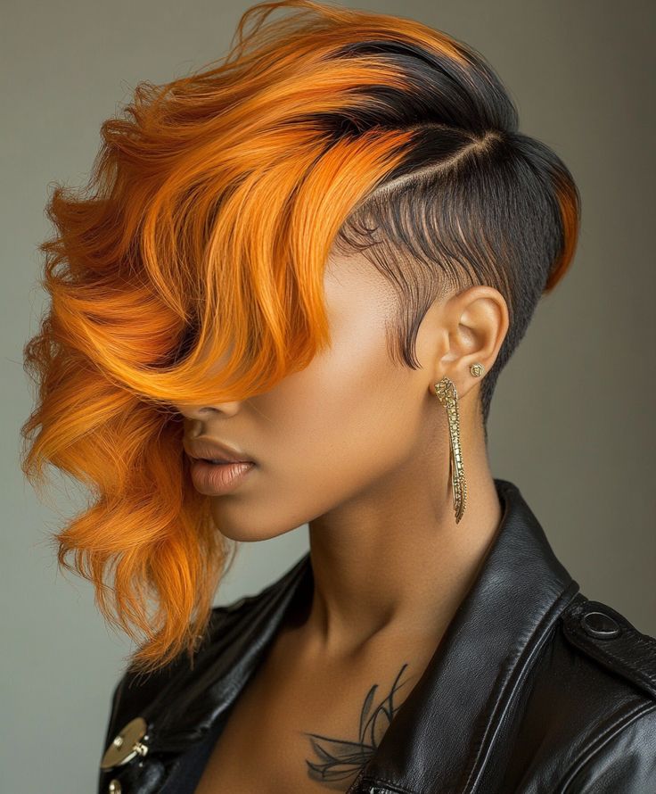 3. Vibrant Orange Undercut with Side-Swept Curls