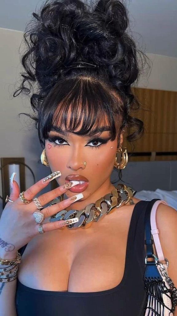 A messy high bun with soft bangs attached is the top bad girl aesthetics of all time. An informal beach date or a graduation ceremony can also have this look. The playfulness of the bun is a suitable feeling of the style which is some kind of formal yet trendy. The hairstyle is acceptable for school, work, and clubbing. The bangs are adding softness to the overall look and also highlighting the beauty of the face. Be a true Instagram star by wearing a bright color lip or adding chunky accessories.