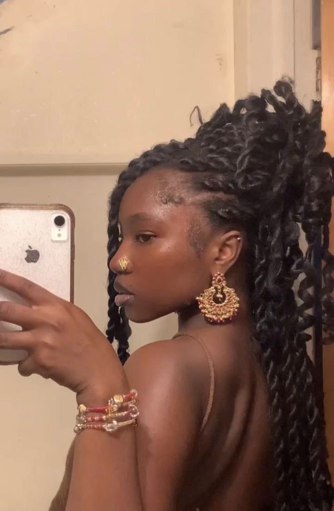 Jumbo box braids, which combine both practical and striking objectives, are still the trend in 2025. The addition of the gold accessories makes it lively; that is why it is actually a perfect match for formal events or prom outfits. Besides, these braids are casual and they look like naturally grown hair, thus they are a protective style that is very easy to care for. This hairstyle is a wonderful choice for numerous black women; it can be accessorized with a work dress, a summer outfit, and even a special Christmas party dress. Wearing it with bold makeup and large earrings will complete a truly baddie look.
