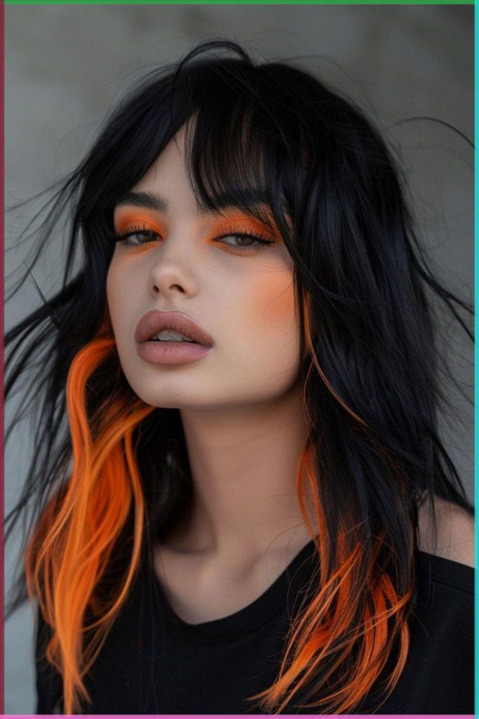 10. Edgy Black and Orange Layered Mullet