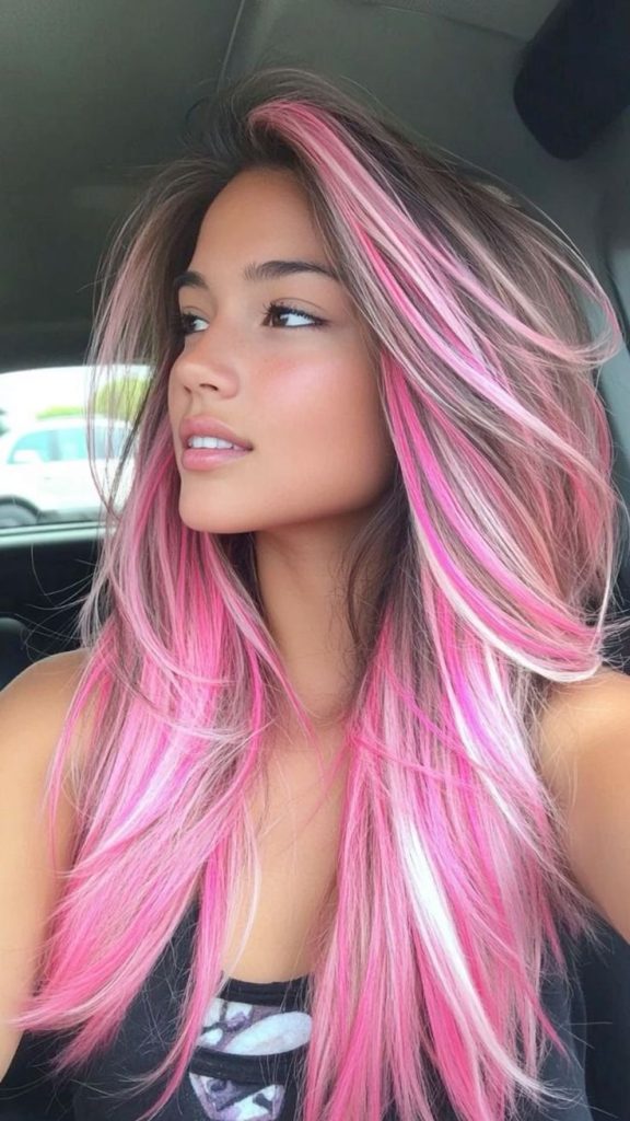11. Bubblegum Pink Streaks for a Playful Edge