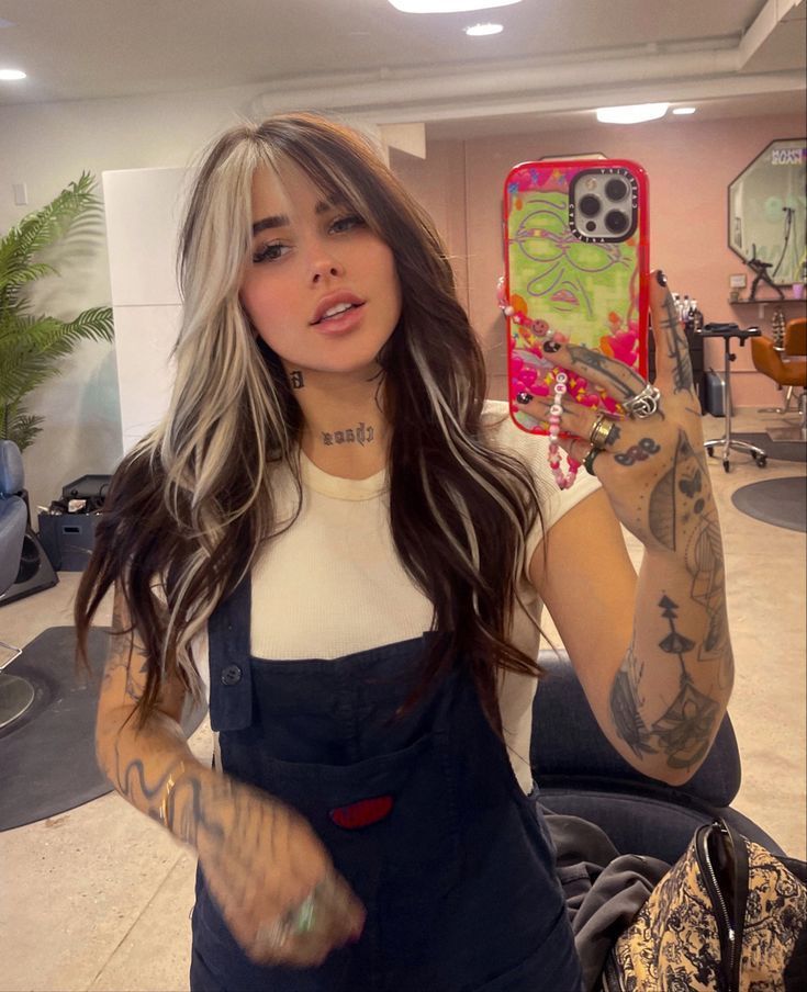 An awesome choice for long hair with a black-white highlight is a fantastic option. The black and white highlight in this case gives the scheme a cool, rebellious, and chic look which is great for work, party, or Halloween. This hairstyle is quite appropriate for women with long hair who want to show their different styles. A stylist’s suggestion is to apply the straightener so that the layers are neat and border; then, the differing colors are brightly exposed.
