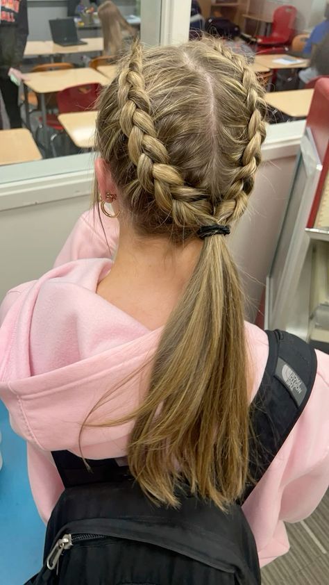 This hairstyle is an art of merging the classic everlasting attraction of Dutch braids and the practicality of a low ponytail. The braids made from closely wove threads thus induce a structured vision, and they are the best to keep the hair in place during sport activities. This is a perfect choice for school or for games, as it gives the impression of being both stylish and practical at the same time. As an extra, you can wear ribbon hair clips that come with a playful mood.