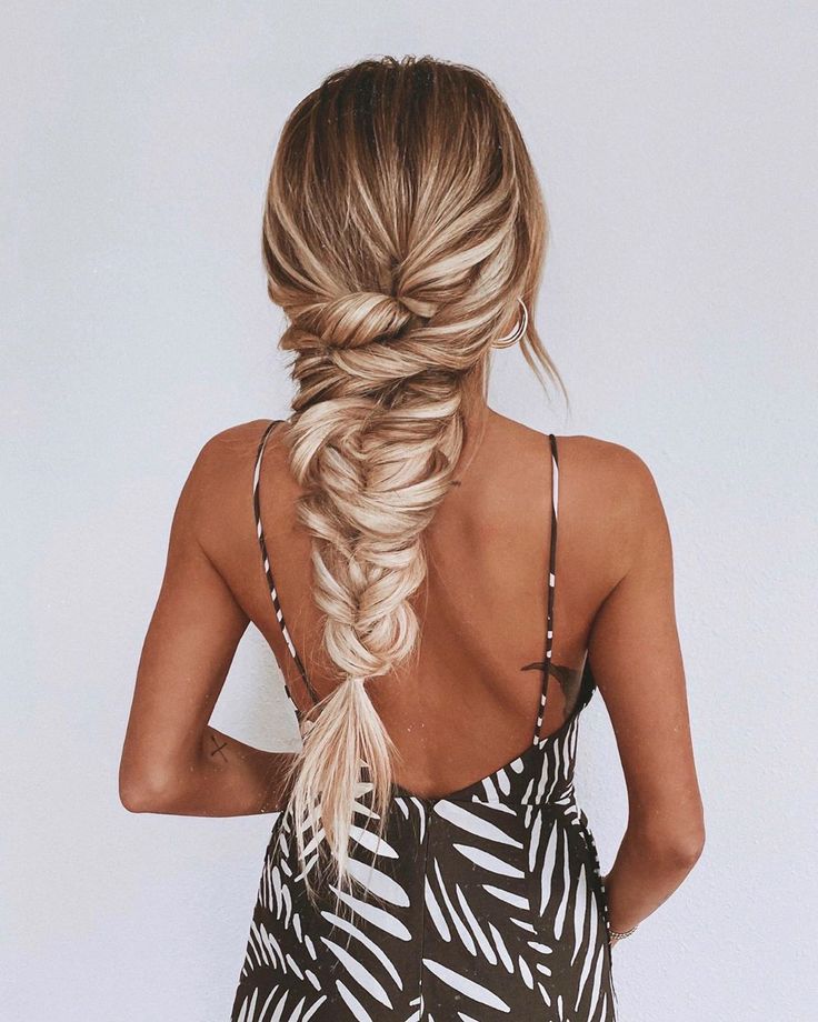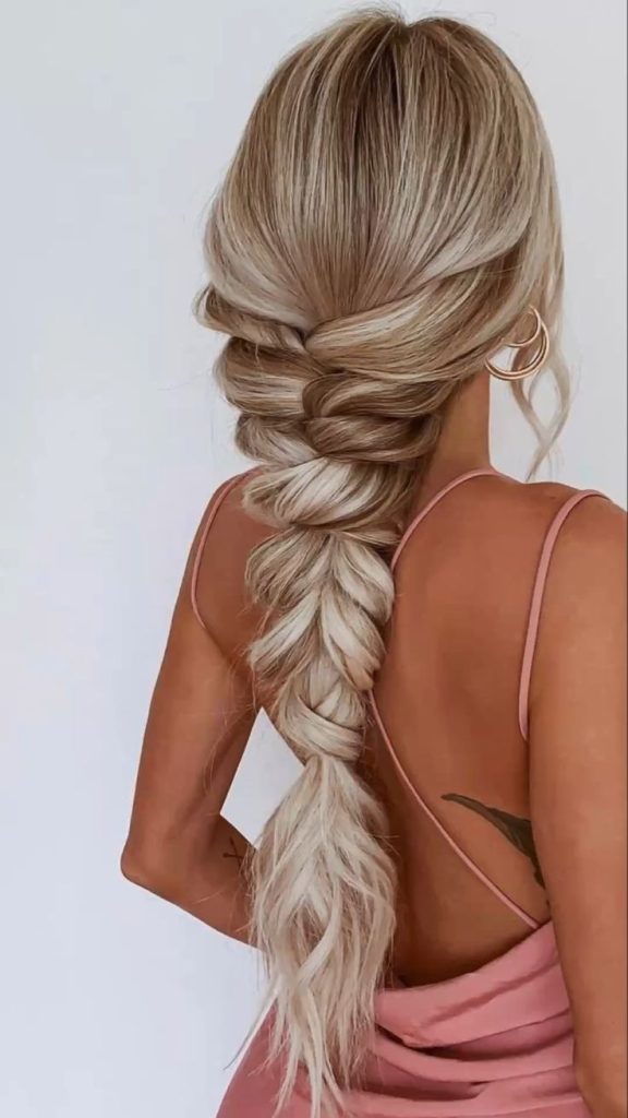 This look is a big plait of heavy mixed-up French braid which makes it look classic, shabby, and chic, ideal for the summer days or beach holidays. The jumble braid suggests the thickness and richness texture which is the right one for long hair. You can wear this type with a light and airy dress or sundress for a relaxed yet fashionable look. The beautiful way to wear such a braid is to have it for those special moments in photos when you look both dreamy and cool.