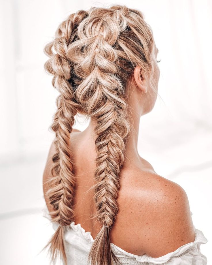 These enormous double French braids transform into fishtail braids at the ends, thus making them look completely romantic and dreamy. This style is great for long hair lovers and is ideal for outdoor events or festivals. The loose, slightly brazen look helps the wearer to present a relaxed yet accomplished style. To do this, spray the hair with a texturizer before braiding and tug the sections gently for extra volume. It is a terrific tutorial for girls who want to learn a different way to make a bohemian-style braid.