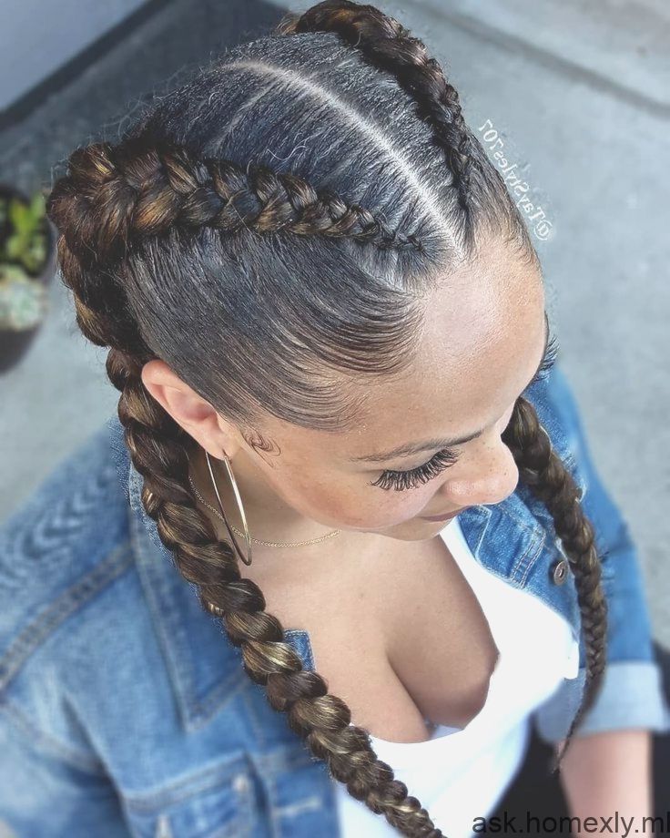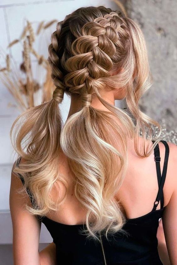 Straightforward, uncomplicated, and classic, these double French braids are the first choice for every nature lover. They are perfect for daily use and the hairstyle is very easy to do with a minimum number of tools. This trendy hairdo is suitable for both shoulder-length and long hair as you can wear it at various events such as a casual outing or spontaneous weekend adventure. You can additionally increase the attractiveness of this hairstyle by applying it to the hair with soft waves or some loose strands that are typically associated with love. This trendy hairdo is also a good choice for the girls who appreciate a low-maintenance yet fashionable look.