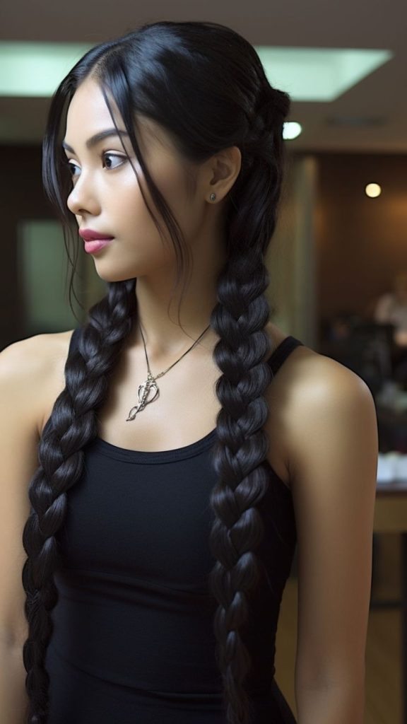 The double French braids as structured and sleek are perfect for a lively lifestyle. They keep the hair neat, and thus they can be worn on workout sessions, during excursions in nature, or even on the way to run errands. This hairstyle is suitable for medium to long hair and its easy style and variability on different occasions make it more attractive. For example, you can use ribbons or clips to accessorize it. The simple lines and the polished finish give a professional but youthful appearance.