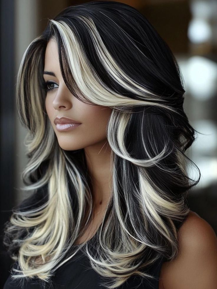 This hairstyle is a large part of the vision you are having for your bold and fierce style. Think of bold, blonde and black stripes running through normal-looking long hair that is neatly straight. The two different shades turn the whole look into a sharp, stylish, high-contrast mode thus making it a nice choice for ladies desiring a bold but smart-looking look. The stripes run up and down, which gives the lengthening effect on the face and at the same time, they create a little modern fashion to the classical highlights. You can add or change some ideas on this hairstyle by combining it with simple clothes that can make the hair the center point of the whole look or with some extraordinary earrings for instance, which will give you an edgy look.