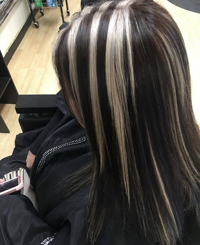 This technique adds a touch of softness to the skunk stripe trend by incorporating the long, straight layers of blonde and brown highlights. The minimalistic approach of the subtle placement helps to add depth and movement while keeping away the base color from the overwhelming effect. This hairstyle is absolutely the best for women who want a simple, fine look, as it is very nicely combined with little makeup and neutral tones in the wardrobe.