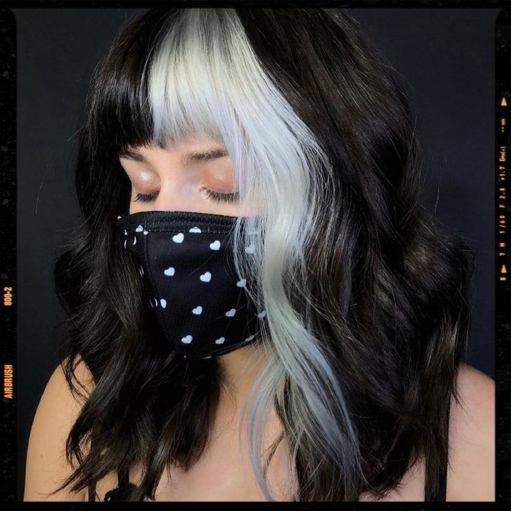 The playful appearance showcases a perfect blunt black fringe and a unique white skunk stripe over the bangs. The stripe also serves as a face-framing highlight, which brings a style of edgy, retro to the hair. This hairstyle is practically made for women who love to stand out; with its pairing to the vintage outfit and bold patterns, this style looks highly attractive.