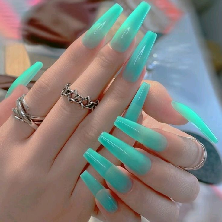The nascent fear of missing out that comes with the coffin-shaped nail set of the homogenous mint green and a translucent nude base. The cloud’s gradient background is excellent, with a seasonal spring look. The design is preferable to girls who like the modern, bright double-sided acrylic nails with trendy but soft styles. They doprovide a silver Jewelry and so the double nail-type of insufficiency.