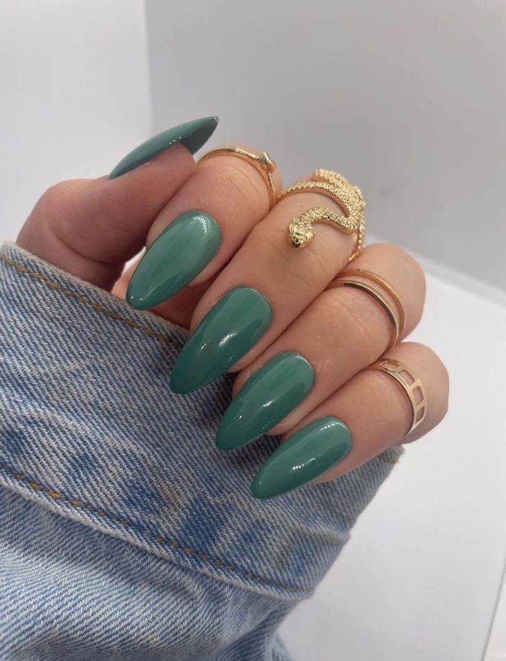 The nail art design referred to as “simple yet stunning” adds a distinct color of shiny emerald which is an example of showing timeless elegance. The almond shape is suitable for the glossy finish, which in turn makes it possible to wear these nails with a pair of denim jackets or even formal outfits. The minimalist design effectively emphasizes the stylishness of the art that is cool and trendy at the same time.