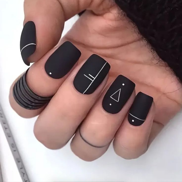 This super stylish matte black design has intricate geometric white lines that make it look very modern and cool. The short square shape brings a contrast of the bold color with a minimalist, up-to-date look, thus it is the best candidate for women wanting to wear sugared black nails with a touch of modernity.