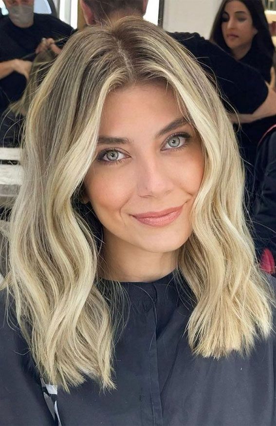 18. Subtle Blonde Lob with Waves