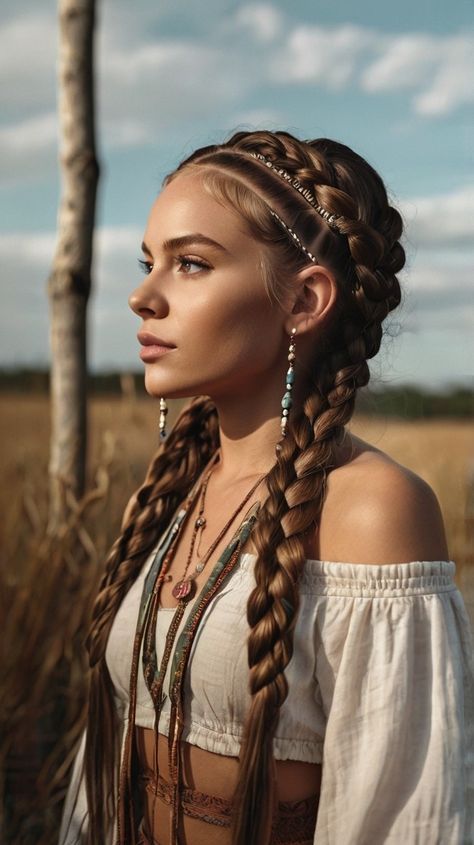 4. Bohemian Double Braids with Loose Strands