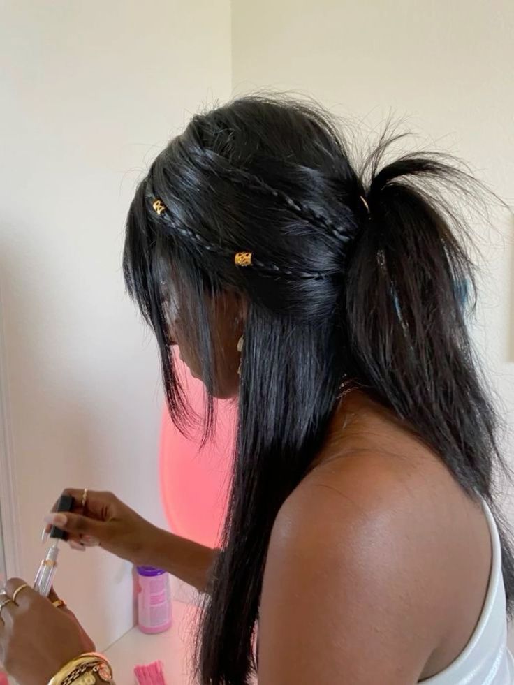 Dressed with stylish tiny braids, this is a cute half-up hairstyle that shows the voluminous ponytail in all its beauty. Ideal for everyday casual or weekend brunches, it is both lively and fashionable. I got the idea from ulzzang styles where the two elements of sleek and textured materials together make it simple and fun. Mini hair accessories like gold cuffs or colored bands are a great way to add your personal touch to the style.