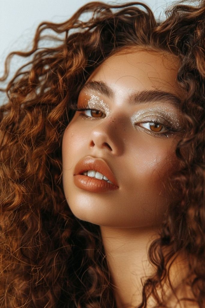 This soft silver shine makeup is the ideal choice for those who want a subtler but still equally festive appearance. The step of applying silver glitter on the eyelids in a very discreet manner adds sparkle to your makeup without making it look too much. This look is for those who would rather have a festive gathering with a more simple style. It is unique with its effect on the brown eyes, giving a chance to their original heat to shine. A brief tutorial can help you with the process of making this easy and chic look.