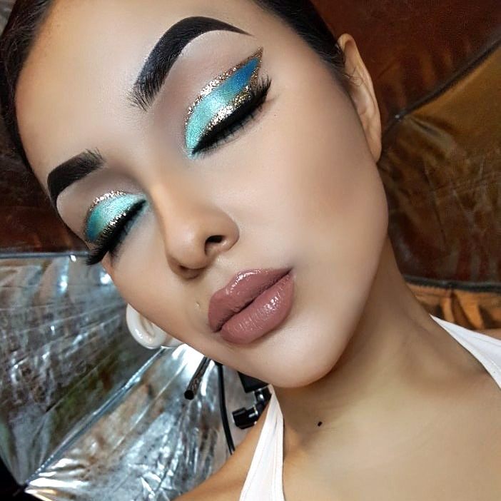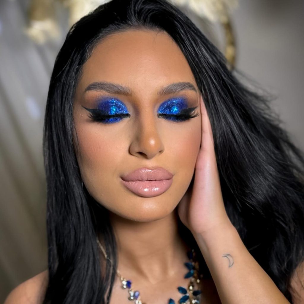 The deep blue eye makeup is a reminder of the depths of the ocean, and this is how you can create it. The bright blue eyeshadow is complemented by sparkling gold, and it makes for a look that is both spectacular and glamorous. The extra bold glitter gives it a celebration quality, ideal for winter parties or outdoor events. The makeup is made more beautiful on brown eyes, which are naturally warm toned. A step-by-step guide will allow you to do this chic and vivid look easily.