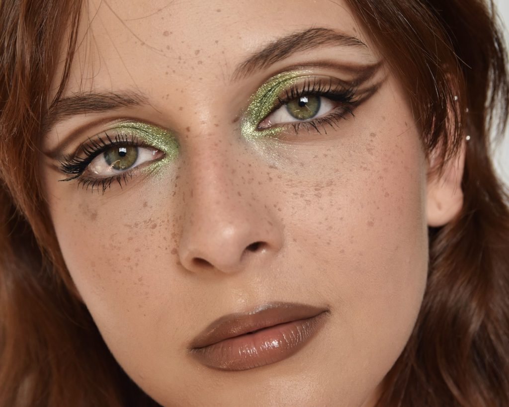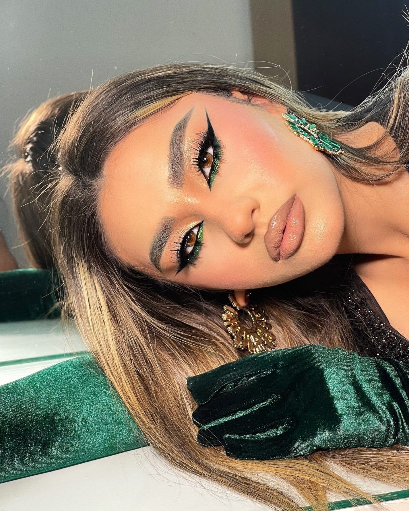 The sophisticated appearance is a soft green shimmer merged with bold eyeliner which adds elegance and is perfect for a festive event. The delicate green glitter hospitality a starry element so this makeup is suitable for holiday parties and special occasions. Apart from that, the accessory is a perfect charmer for those who have green eyes as it increases their attractiveness and gives a fuller gaze. With a simple and easy to follow tutorial, you can effortlessly sport this trendy and playful look within a short time.