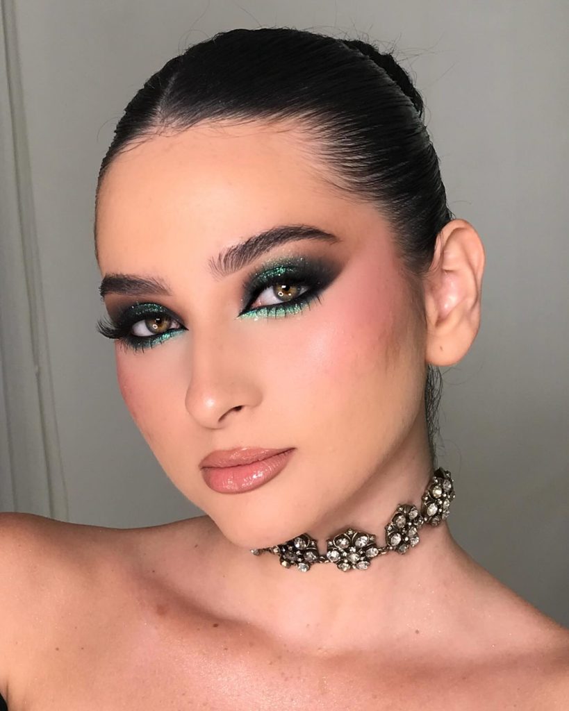 The bewitching appearance merges the deep emerald green with the dusky black to create a magical effect. The full-bodied green is the essence of the eyeshadow, which is merged with black in a stunningly artistic manner, giving a modern-looking yet classy effect. This kind of makeup is suitable for disco parties and Christmas parties. It works ideally on brown-eyed people as it allows them to show their organic warmth. A comprehensive step-by-step guide is available to help you out in achieving the eye-catching and colorful appearance without getting much trouble.