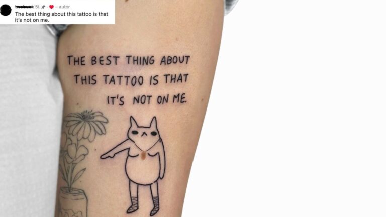 If you’re not really creative, memes are always perfect for funny tattoos! This famous meme shows how we all sometimes feel about our lives. It’s pretty relatable, isn’t it?
