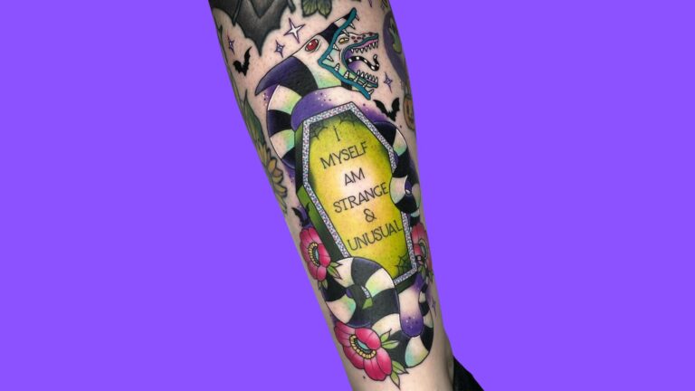 If you’re into words rather than images why not ink magic words from the movie? Saying the name “Beetlejuice” three times summons the Ghost with the Most. A cool way to show off your love for the movie, isn’t it?