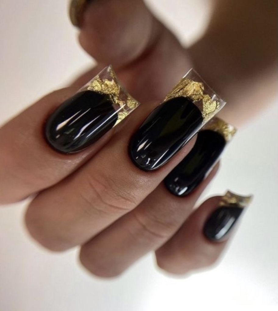 What we have here is a stunning tandem of black and gold, a combination that expresses luxury and eternity. The high gloss black serves as a playground for the gold tips, which are like the craftsmanship of an expert. These nails are a sign of French manicure’s progress, be it a formal event or just to upgrade a casual look.