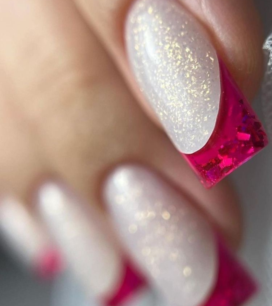 15. Gradient Glitz in Pink and White