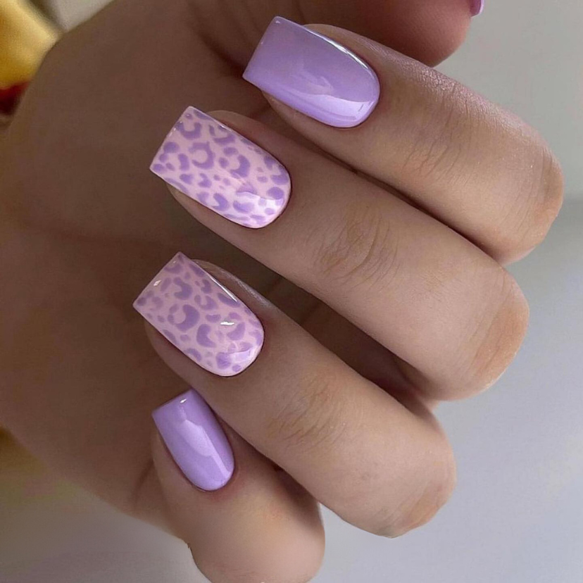With its unique lavender leopard print design, this set dares to walk on the wild side and brings an exotic experience to the summer nail trends. On a delicate transparent background, the print becomes more playful and at the same time more luxurious, and thus it can be seen as an ideal option for almond shape nails for those who want to be more animalistic in their style choices.