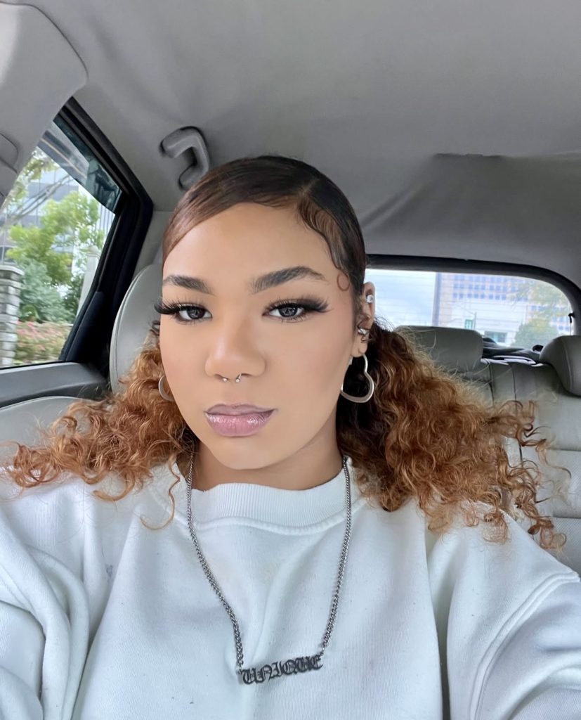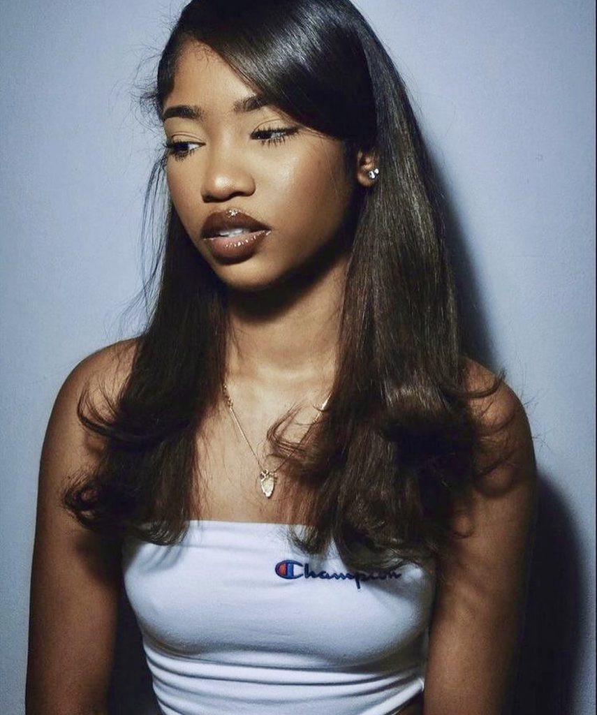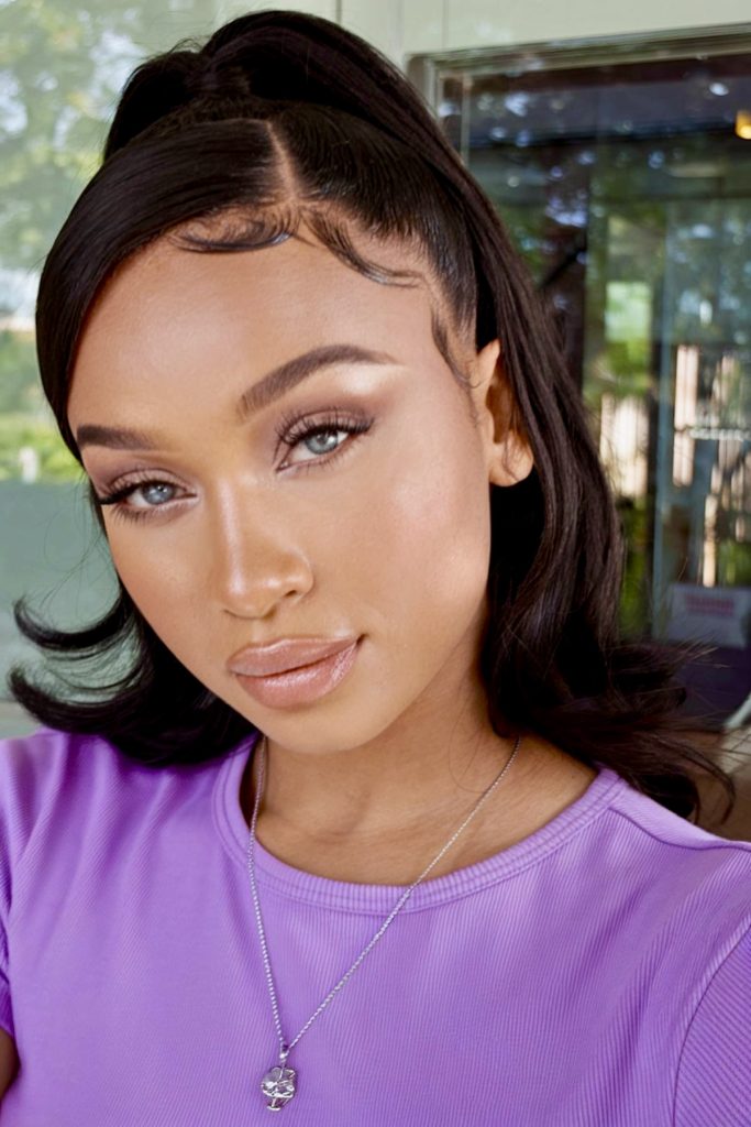 This appearance really makes laid-back baddie: confident, relaxed, and precisely in between extra. The half-up twin buns look cool enough to be more of an effort, but they are not. It is Tik Tok bad girl with a little dose of womanly charm.