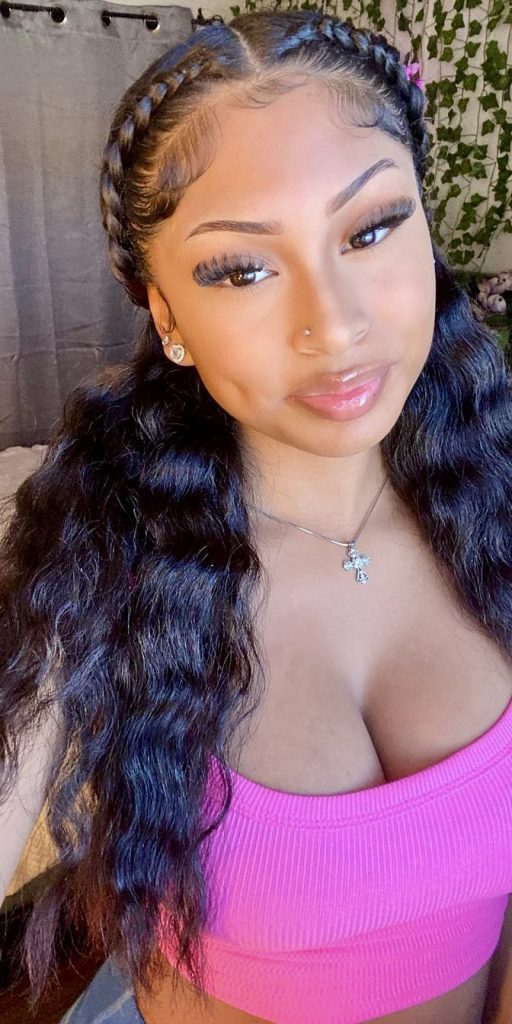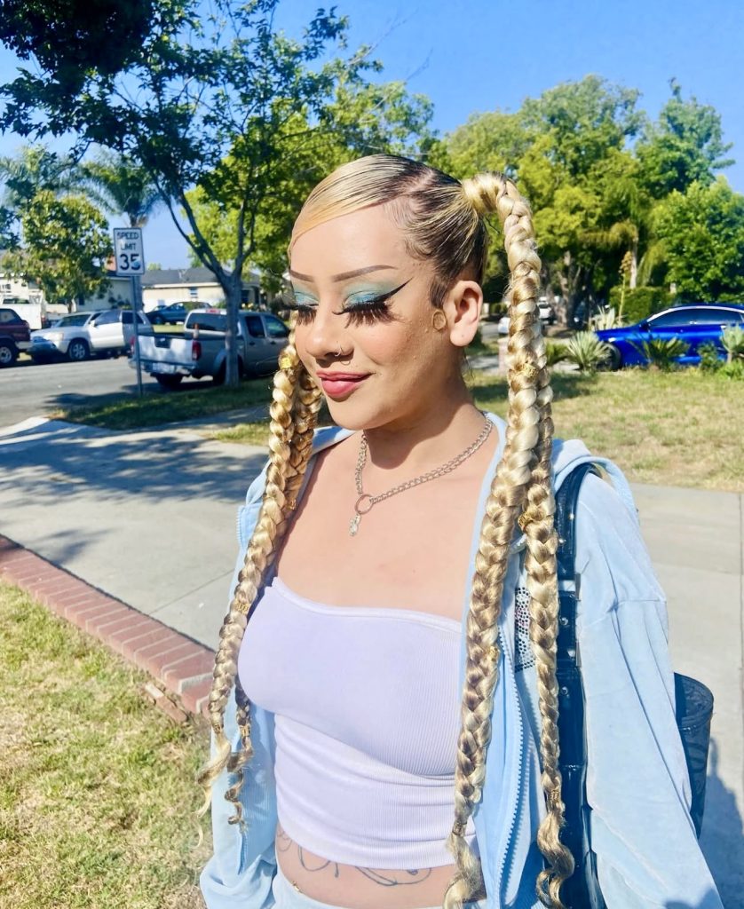 Providing Bratz doll fantasy in the most perfect manner these long blonde twin braids are a hype in themselves. The extremely deep side part and the swooped bangs take the playfulness to an entire new baddie level. It is just the appearance of something that is meant to be worn on the person who has confidence in every step.