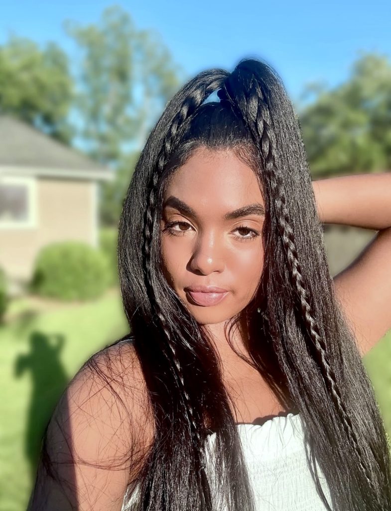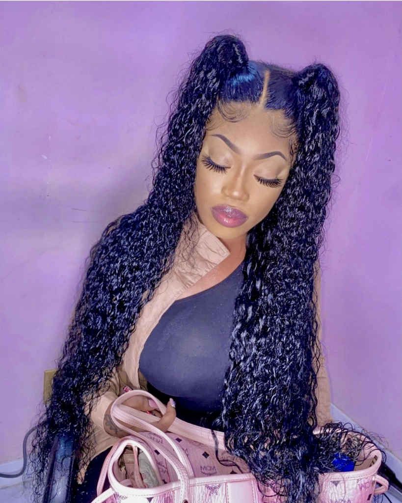 Ideal braids long fanciers or those who just need a personality-infused summer protective style. The appearance suits every face shape and can preserve natural curly hair, but be trendy at the same. Add some mousse to have the curls in shape and apply some edge control to obtain that smooth baby hair look.