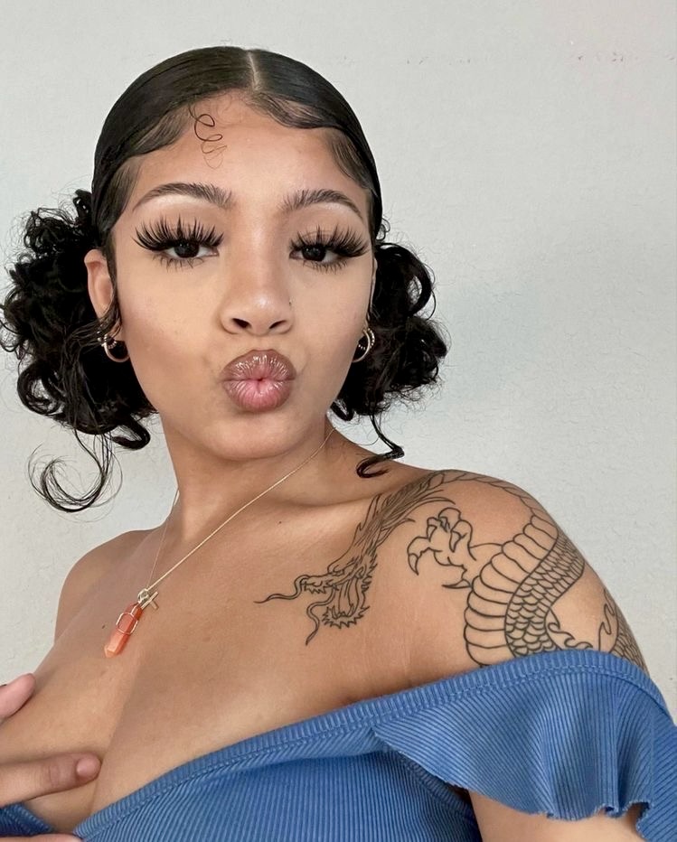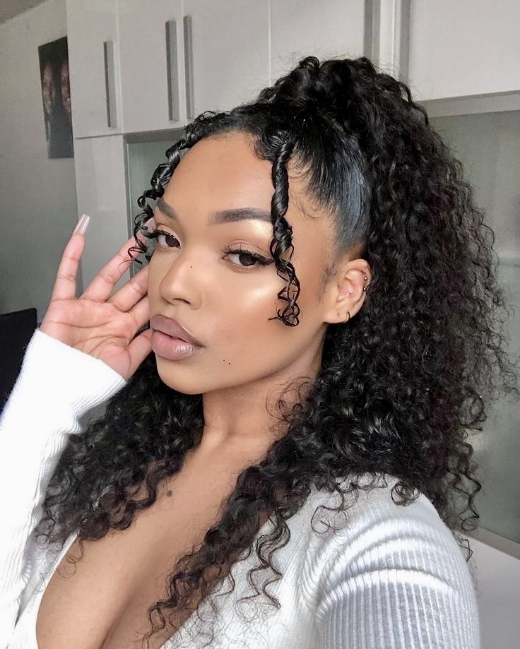 Perfect with curly long hair or those that possess Latina curly side look. Use curl cream to keep those puffs moist and narrow, edge control will help in keeping the front smooth. This style goes extremely well with oversized sweatshirts, oversized hoops, or even layering chains in that cool meets cute aesthetic.