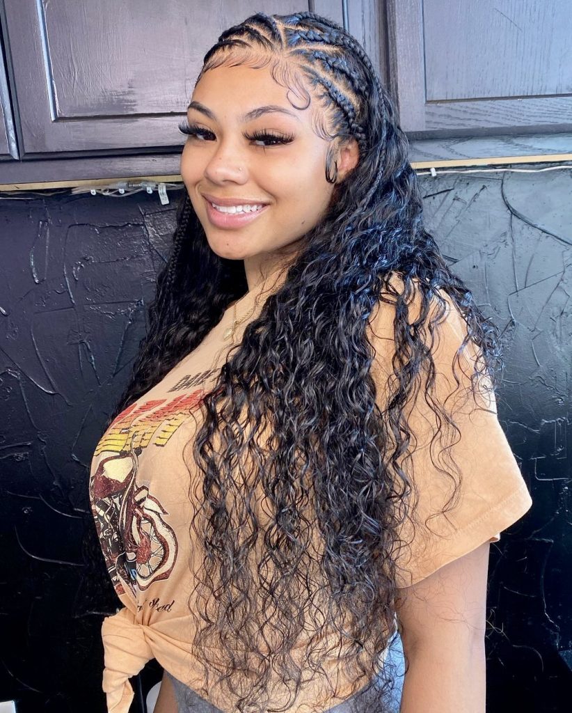 This style brings joy, confidence, and instant cool factor. The shiny cornrows then give way to gorgeous curly hair so fresh out of the ocean that it can be seen anywhere equally on a night out as well as on a trip to target. The balance between structure and softness is pure magic.
