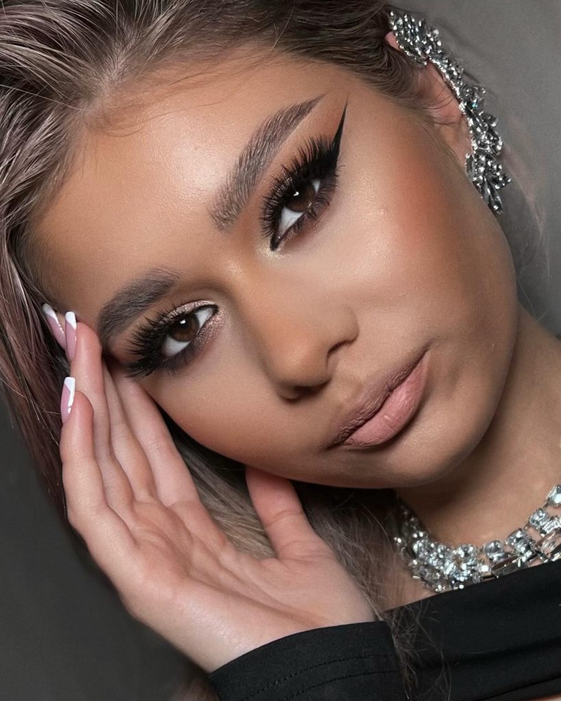 In the latest trend, eye makeup is paired with striking and full lashes with a smoky winged liner. The eyeliner is thick and smoky, with an added wing that creates the illusion of depth and dimension to the eyes. Hence, combining it with lashed that are about to blow off is the best choice for those who are primarily penetrating with this cool look. This is a chic way to wear the makeup directly as nighttime, an eye-catching model of the day.