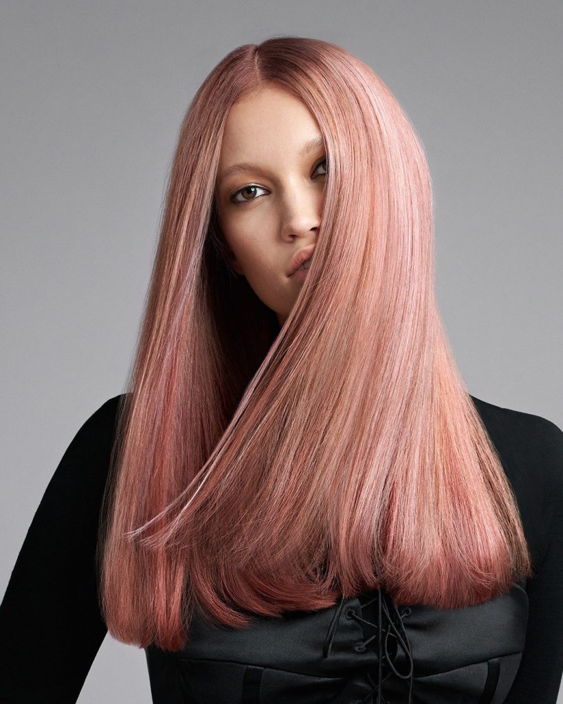 Rose gold has a timeless appeal, and this version brings a delicate, sophisticated vibe that suits both warm and cool undertones. The hair features a subtle blend of blush pink and warm gold that adds a soft glow, making it an ideal choice for women who want a unique color that’s both understated and chic. The smooth, straight finish emphasizes the gradient effect, making this style particularly appealing for brunettes looking to lighten their hair without going blonde. It’s perfect for those aiming for a natural, aesthetic appeal with a touch of trendy elegance.